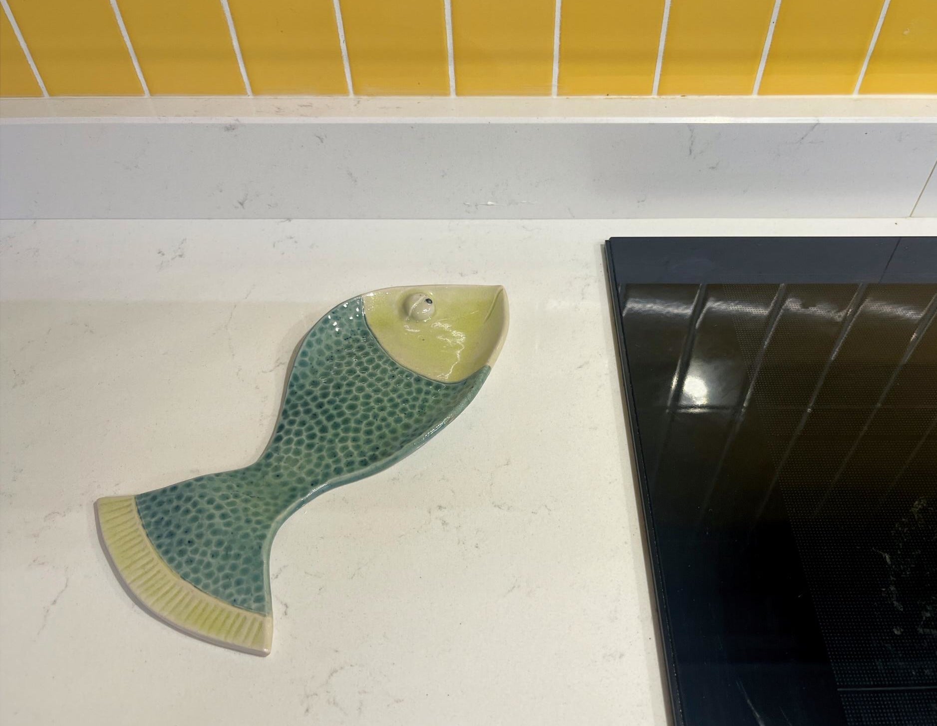 Reposa cuchara Pez Verde — cerámica artesanal