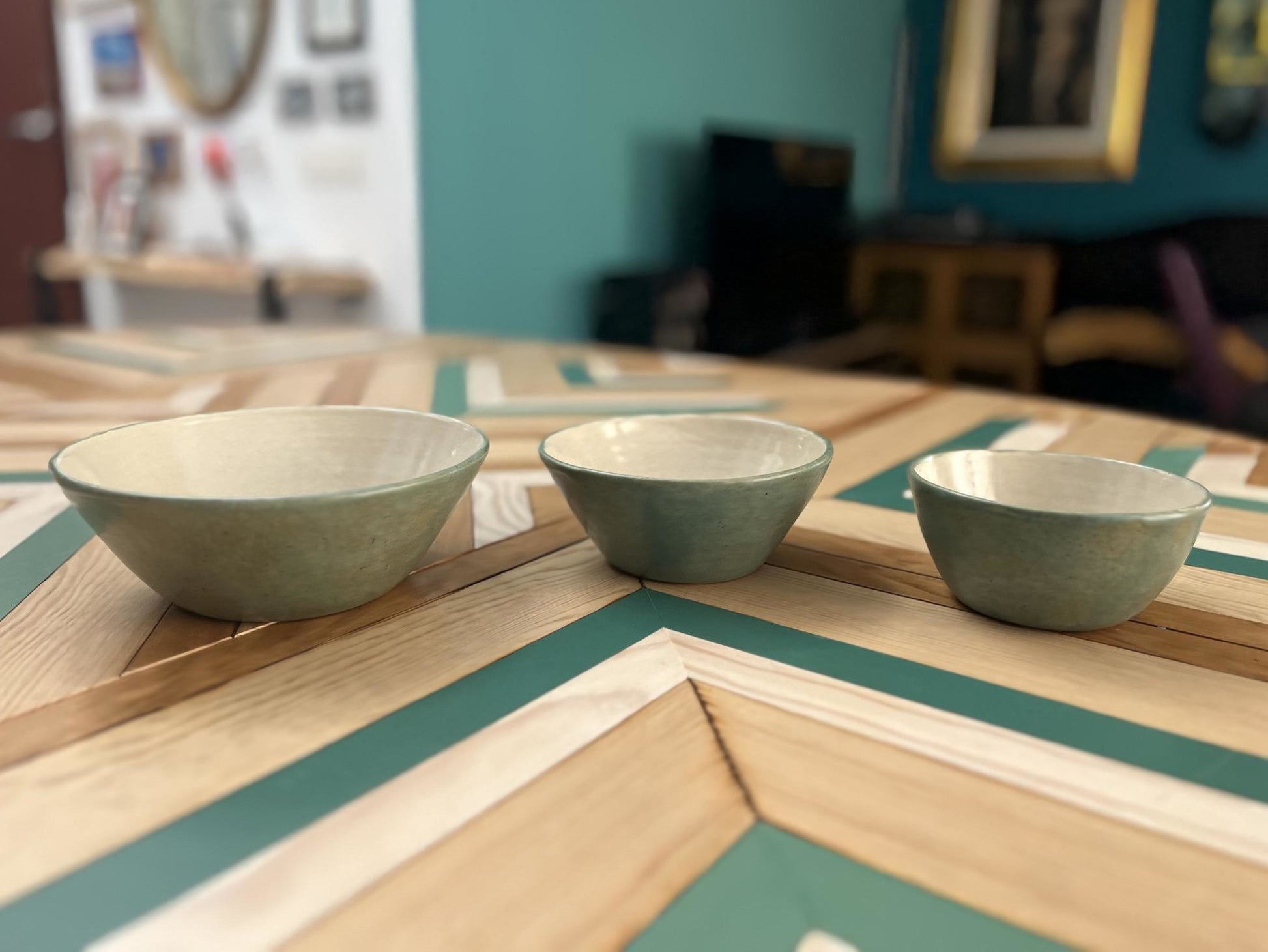 Set de 3 cuencos de gres · Verde tierra
