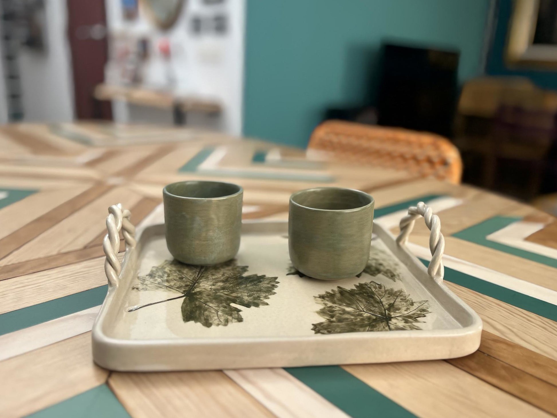 Este set de vasos está realizado a mano en cerámica y se caracteriza por su acabado mate en un delicado tono verde. Cada vaso tiene ligeras variaciones en color y textura, lo que los convierte en piezas únicas y especiales.